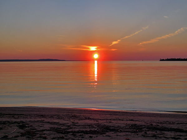 I’m calling this photograph “iSunset”, not because it was taken with an iPhone, because it wasn’t. It could have been, but it wasn’t. I’m calling this photo “iSunset”, because the sun sitting just above the horizon looks like the dot on a lowercase i and the sun’s streaked reflection across Lake Superior looks like the rest of the letter, hence “iSunset”. I chose this shot, in part, because of the illuminated cloud above the sun. I thought that it looked more ‘artistic’, but it really doesn’t fit with the paradigm of “iSunset”. So think of the cloud as some sort of foreign accent mark, like ˜ or ˆ or ¨. Making this sort of the international version of “iSunset”. This picture was taken by Anne and is part of our endless summer sunset series. We have an awful lot of them. 😉