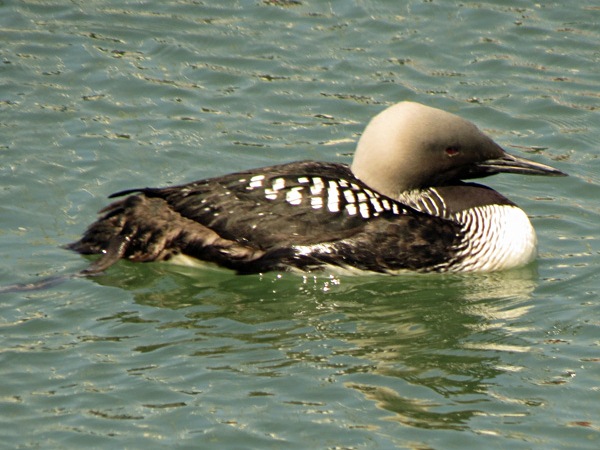 This Pacific Loon was photographed last May in San Francisco Bay, near the Golden Gate Bridge. It was the day of the Golden Gate’s seventy-fifth anniversary. There were thousands of people onshore and hundreds on the water and this bird showed no fear. It looks a lot different then the loons here in the Midwest, the Common Loon.