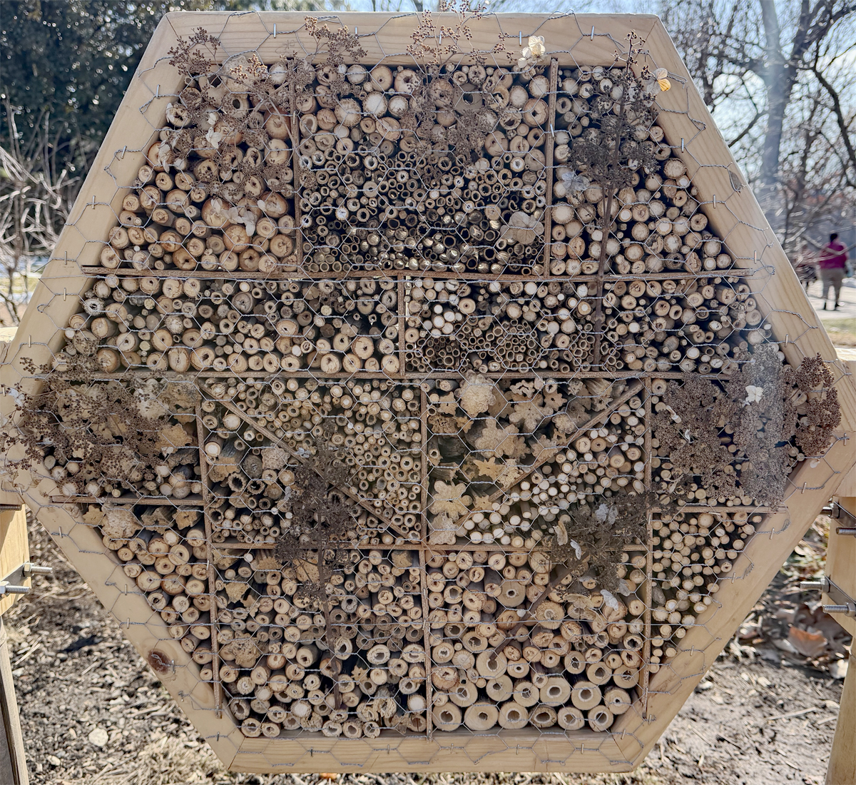 MoBot Air Bee ‘N’ Bee (aka insect hotel). The hollow tubes provide Shelter and a safe nesting space for native bees and wasps. Most bee species are solitary and do not live in large colonies or produce honey. However, as pollinators, they are critical for the survival of our native plants and allow us to enjoy beautiful flowers and delicious fruits and vegetables in our gardens!