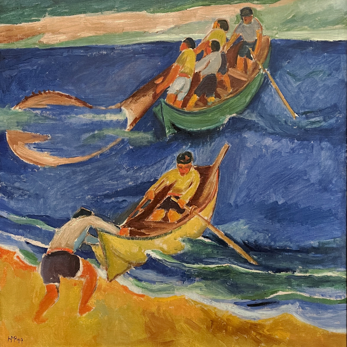 In this scene of fishermen launching boats and hauling nets, Max Pechstein found peace after experiencing the horrors of World War I (1914-18). He had visited the charming Italian fishing village of Monterosso four years earlier, back in 1913. But the war intervened before he could realize his sketches as paintings. Released after three years fighting on the Western Front, he finally returned to his studio and his Monterosso sketches. The war seems far away from this sunny Mediterranean beach.